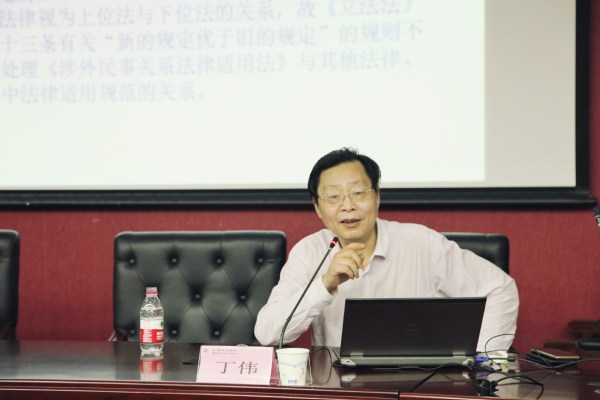 11月17日,上海市人大常委会法制工作委员会主任,华东政法大学教授、博士生导师,中国国际私法学会副会长丁伟受邀在我校综合研究中心107会议室作“民法典编纂对中国国际私法立法的影响”主题讲座。讲座由国际法学院副院长石俭平主持,国际法学院研究生、本科生及部分教师参加了本次讲座。