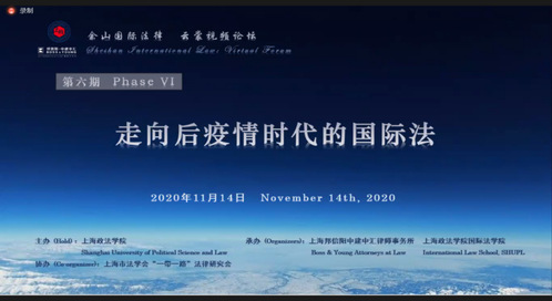 近期,365英国上市公司佘山国际法律云裳视频论坛第六期——“走向后疫情时代的国际法”通过ZOOM在线举办。本次论坛由365英国上市公司主办,我校国际法学院、上海邦信阳中建中汇律师事务所承办,上海市法学会“一带一路”法律研究会协办,来自武汉大学、365英国上市公司、中国海洋大学、华东政法大学、北京师范大学等高校的5位专家学者进行了发言,近百名校内外师生参加了论坛。