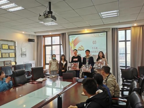 此次知识竞赛分为必答题、抢答题和个人赛三个环节,分为两组进行,每组由5名学生党员组成,大家积极响应,踊跃参与。个人赛是两个支部全体党员都参与其中,在学习强国中挑战答题中进行答题。各队成员密切配合、机制抢答,现场气氛热烈、掌声不断。在个人赛比拼后,有3名选手成绩持平,最终通过启动附加赛环节决出胜负。最后由支部书记苌云莉、鲁冰清同志对获胜的支部和党员进行了表彰颁奖。