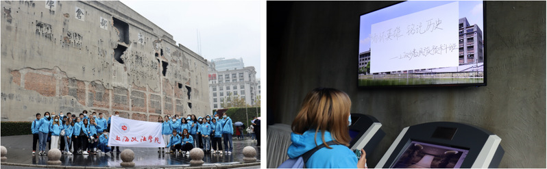 同学们首先来到上海唯一的战争遗址馆——四行仓库抗战纪念馆。它以一封谢晋元在赴淞沪战场前写给妻子凌维诚的家书开篇,展现了以谢晋元为首的“八百壮士”在国难当前之际,舍家为国的家国情怀,展示了上海人民投身全民族抗战、共御外敌的历史事实,以及中外各界对“八百壮士”英雄事迹的颂扬和怀念。期间,大家仔细观看展览,认真聆听讲解,纷纷被英雄的壮举与精神所感动。出馆前,同学们留下“缅怀英雄,铭记历史”这句话,表达了对英雄的缅怀。