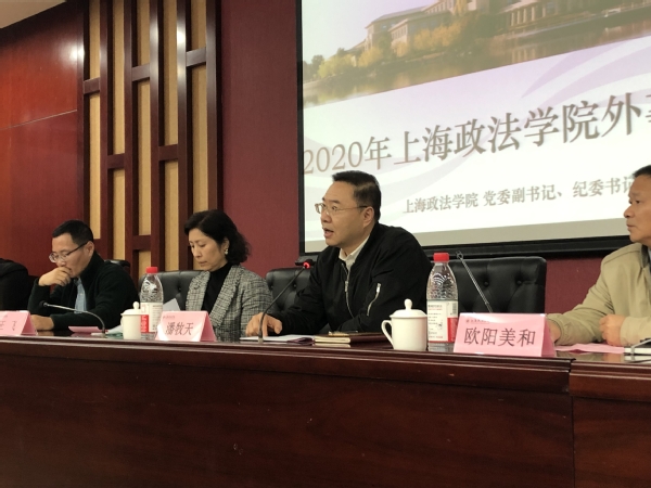 潘牧天代表我校对市外办相关部门领导和专家的莅临指导表示热烈欢迎,并简要介绍了我校国际化工作的情况。他指出,我校正在加快落实中央赋予的战略任务,力争将中国-上合基地这一国家级平台打造成上海合作组织安全、反恐、司法合作等方面官员培训、决策咨询、人才培养的高端平台。国际化人才培养一直是我校的重点工作之一,我校致力于扩大来华留学生规模,多层次发展来华留学生教育,希望通过本次外事培训会议进一步合规、优质推进国际化办学。