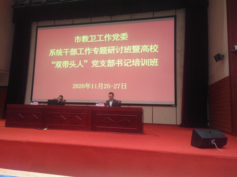 11月25日下午,由中共上海市教育卫生工作委员会主办,我校继续教育学院(培训部)承办的“市教卫工作党委系统干部工作专题研讨班暨高校‘双带头人’党支部书记培训班”开班仪式在中国-上合基地举行。来自沪上各所高校的党政领导代表参加此次培训。市教卫工作党委副书记滕建勇作开班动员,市教卫工作党委组干处处长王瑞杰主持开班仪式。