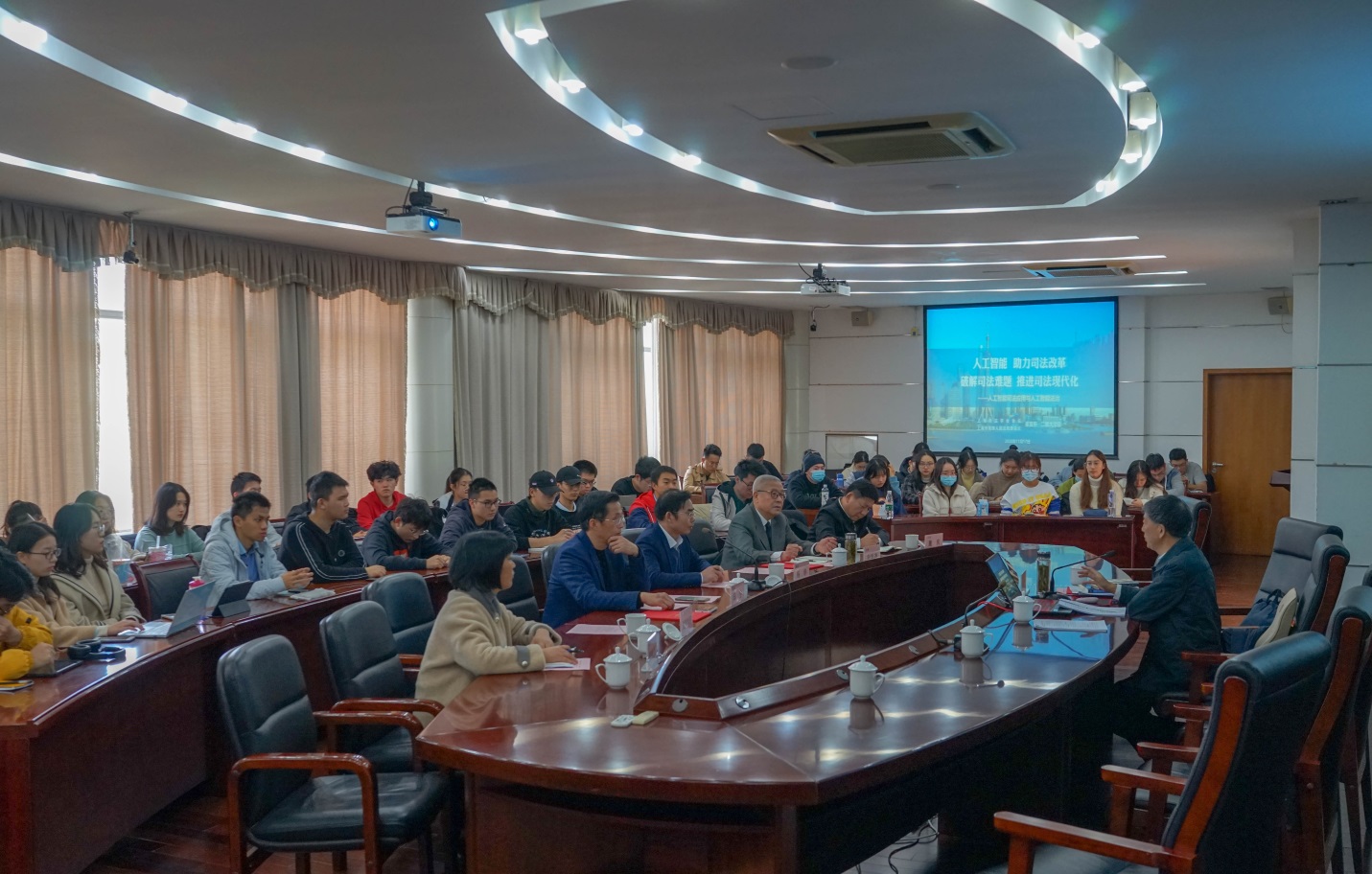 讲座在掌声中圆满结束。人工智能法学院相关负责人、专业教师和2019级、2020级本科生代表等参加聘任仪式,近百名师生聆听了学术讲座。(吴惟予撰稿 程禹豪摄影)