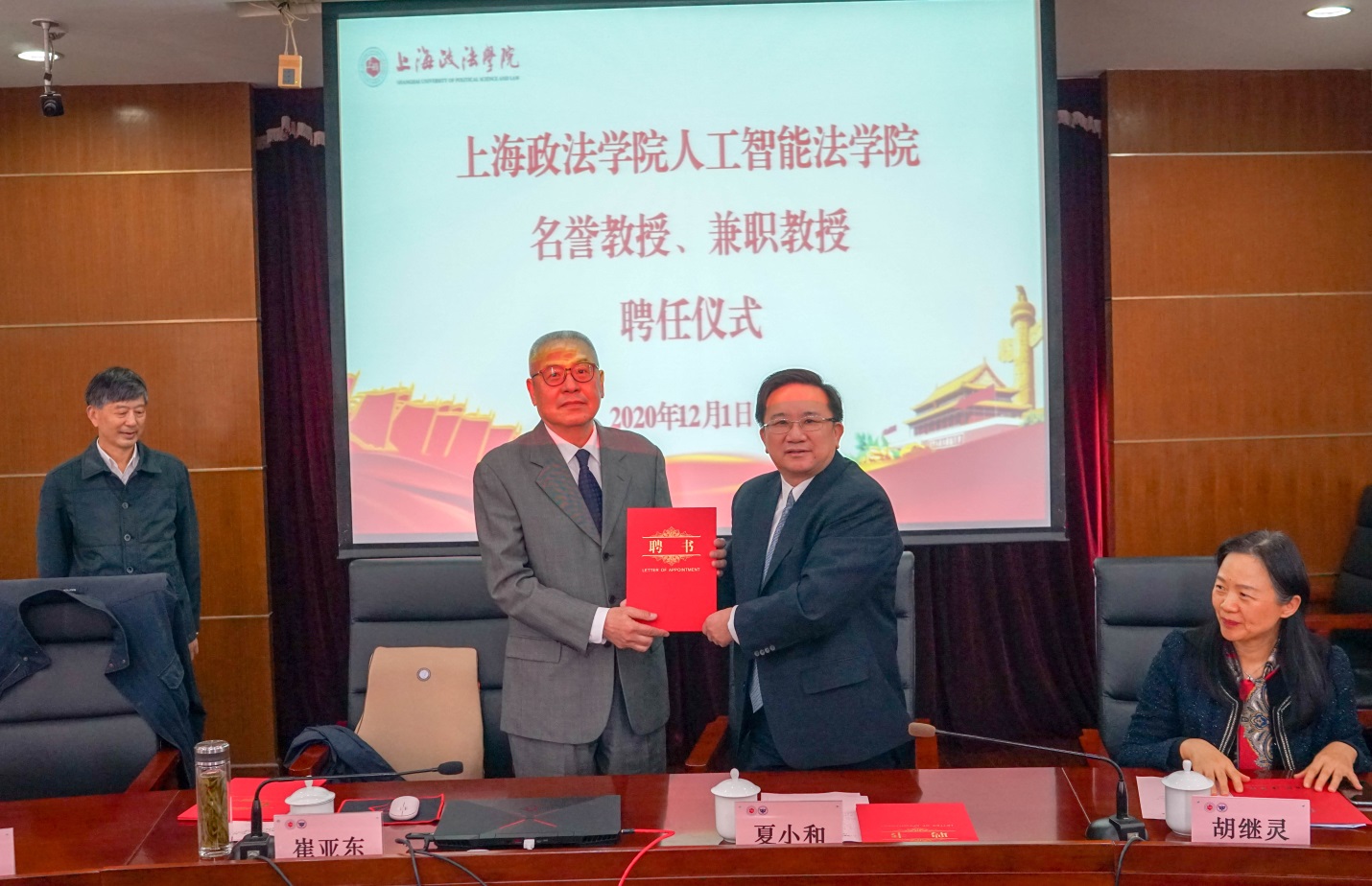 12月1日下午,人工智能法学院名誉教授(首席专家)、兼职教授(专家委员会主任、副主任)聘任仪式在求实楼513会议室举行。校党委书记夏小和、副校长胡继灵以及受聘专家出席仪式。