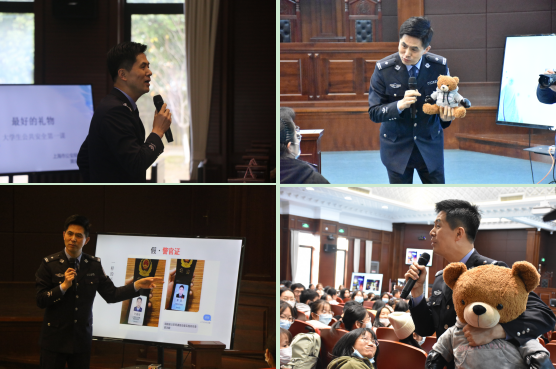 12月1日下午,沪上安全教育网红专家、上海市公安局治安总队黄奕警官应邀为我校三百余名师生开讲公共安全教育。黄奕以“安全最好的礼物”为题,呈现了一场别开生面的防范电信诈骗安全讲座。青浦公安分局治安支队、夏阳派出所,我校学工部、保卫处等职能部门负责人参加了讲座。