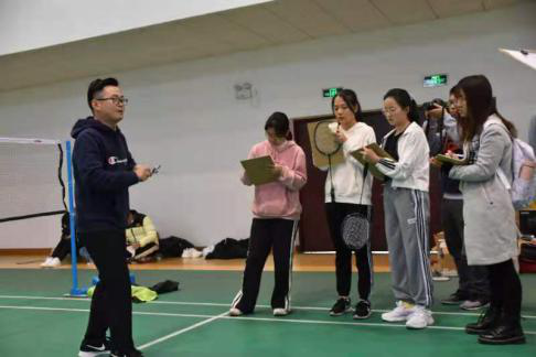 下午一点,羽毛球比赛开始前,警务学院—人工智能法学院联合团委书记王罗超为同学们讲解赛事相关规则并鼓舞士气。