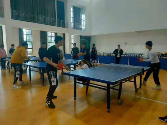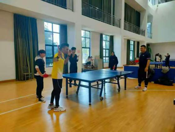 11月29日上午十点,乒乓球比赛正式开始。本次比赛分为男单、女单、男双、女双、混双五种类型。比赛开始前,各位运动员在乒乓球桌前进行着热身活动,参赛选手激昂的热情在短暂的热身运动中得到充分的展现。比赛过程中,双方选手你来我往、势均力敌,球与拍的撞击声、队员的欢呼声不绝于耳。球员们的目光随球而动,双手从心而挥,沉着进攻、冷静防守。在混双比赛中,队员们一左一右、你进我退,展现出超乎寻常的默契。