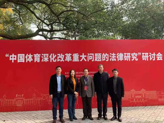 12月11日-12日,“中国体育深化改革重大问题的法律研究”研讨会在苏州大学举办。研讨会由中国法学会体育法学研究会、苏州大学主办,100余名国内体育法研究专家汇聚,共同探讨中国体育深化改革的重大法律问题。国家体育总局政策法规司法规处处长韩向飞、国家体育总局教育与反兴奋剂协调处处长隆胜军莅临研讨会。我校体育法研究团队关保英教授、谭小勇教授、姜熙副教授、向会英副教授、徐士韦副教授参加了此次研讨会。