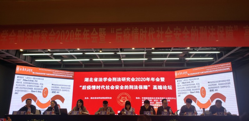 12月10-12日,2020年湖北省刑法研究会年会暨“后疫情时代社会安全的刑法保障”高端论坛于武汉市金谷国际酒店召开。本次会议由湖北省法学会刑法研究会主办,中南财经政法大学反恐怖主义研究中心和数个知名律师事务所具体承办。来自湖北省法学会、湖北省高级人民法院、湖北省人民检察院、湖北省国家安全厅、武汉大学、华中科技大学、中国政法大学、中南财经政法大学、中国人民公安大学、中南民族大学等单位的300余位专家参会,在严格遵守常态化疫情防控管理要求的基础上,围绕后疫情时代总体国家安全观与刑法保障、公共卫生安全与刑法保障、其他社会安全问题等相关问题进行深入研讨。