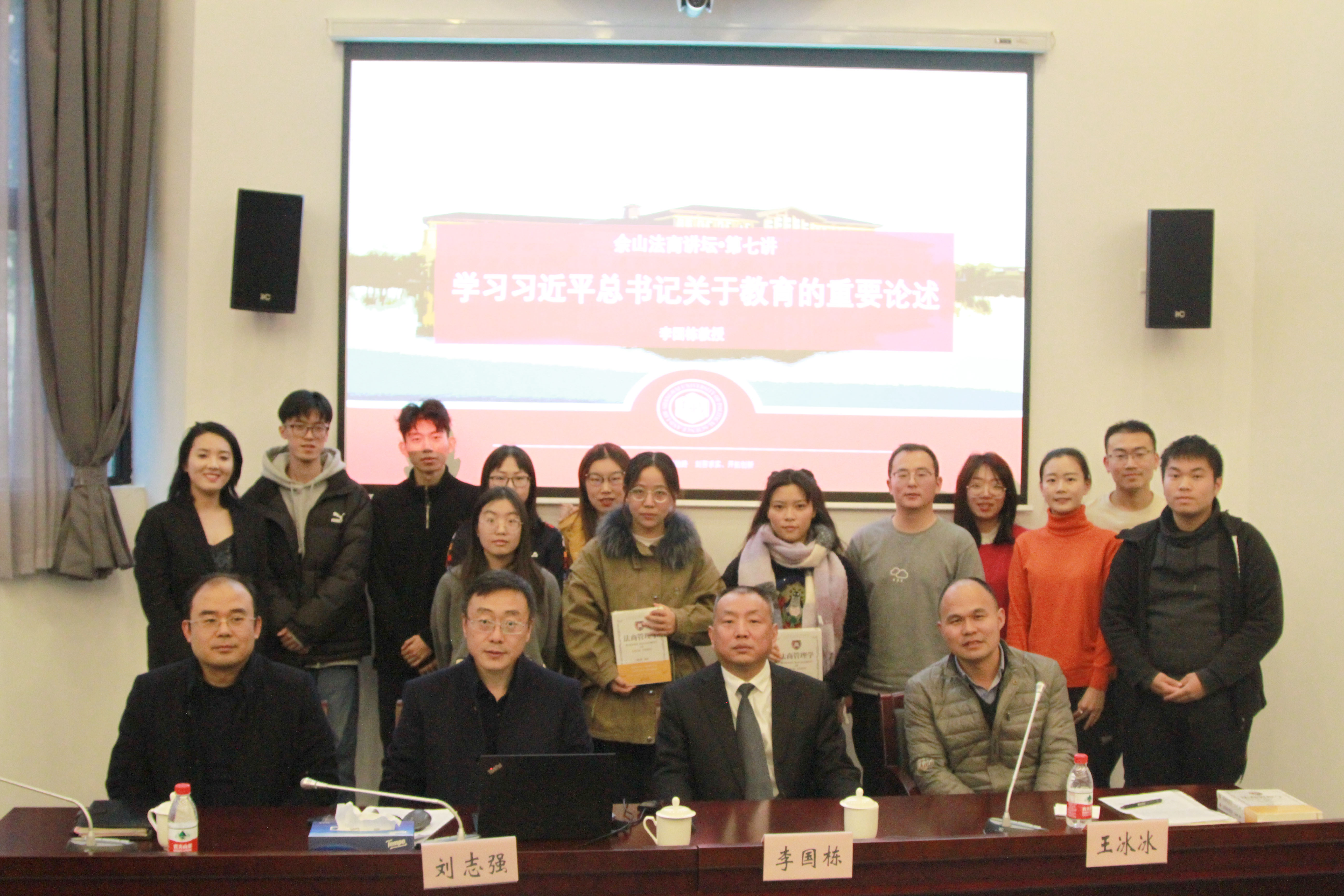 12月15日下午,佘山法商讲坛第七讲在上合基地通过线下线上相结合的方式举行。烟台大学马克思主义学院院长、烟台大学学报编辑部主任,山东省社科联“党的十九大精神”宣讲专家,华东师范大学马克思主义学院挂职副院长,法学博士、硕士生导师李国栋教授应邀来我校,为师生作题为“学习习近平总书记关于教育的重要论述”主题讲座。本次论坛由经济管理学院主办,研究生处协办。经济管理学院王冰冰老师主持。