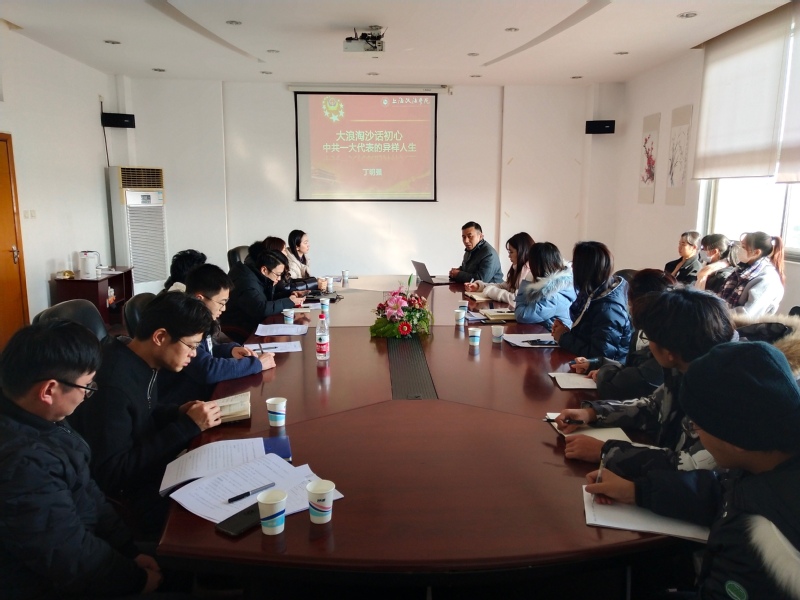 丁明强以“大浪淘沙话初心——中共一大代表的异样人生”为主题,带领师生党员回顾党史。丁明强表示,明年是中国共产党建党100周年,党员同志要认真学习党的发展历史,感悟早期共产党人的建党初心。以毛泽东和董必武为代表为共产主义事业奋斗终身的生动案例,对比他们的政治信仰和人生历程,提醒党员同志要坚定理想信念,坚决履行职责,坚持党性的锤炼,坚守道德的底线。