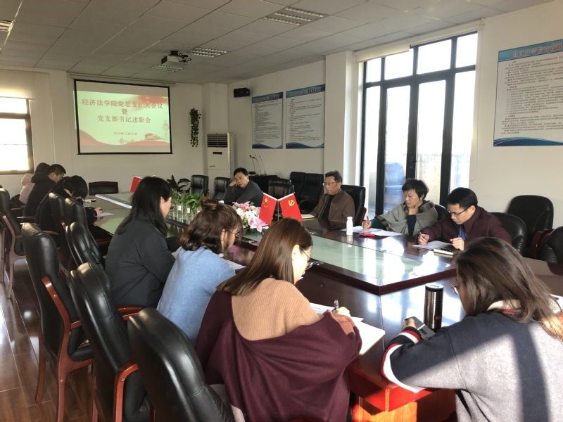 为将全面从严治党向基层延伸,进一步加强基层党建工作,12月21日下午,经济法学院党总支在B1-201会议室召开了党总支扩大会暨支部书记述职评议会,会议由党总支书记郭斌主持,党总支委员、各党支部书记参加了会议。