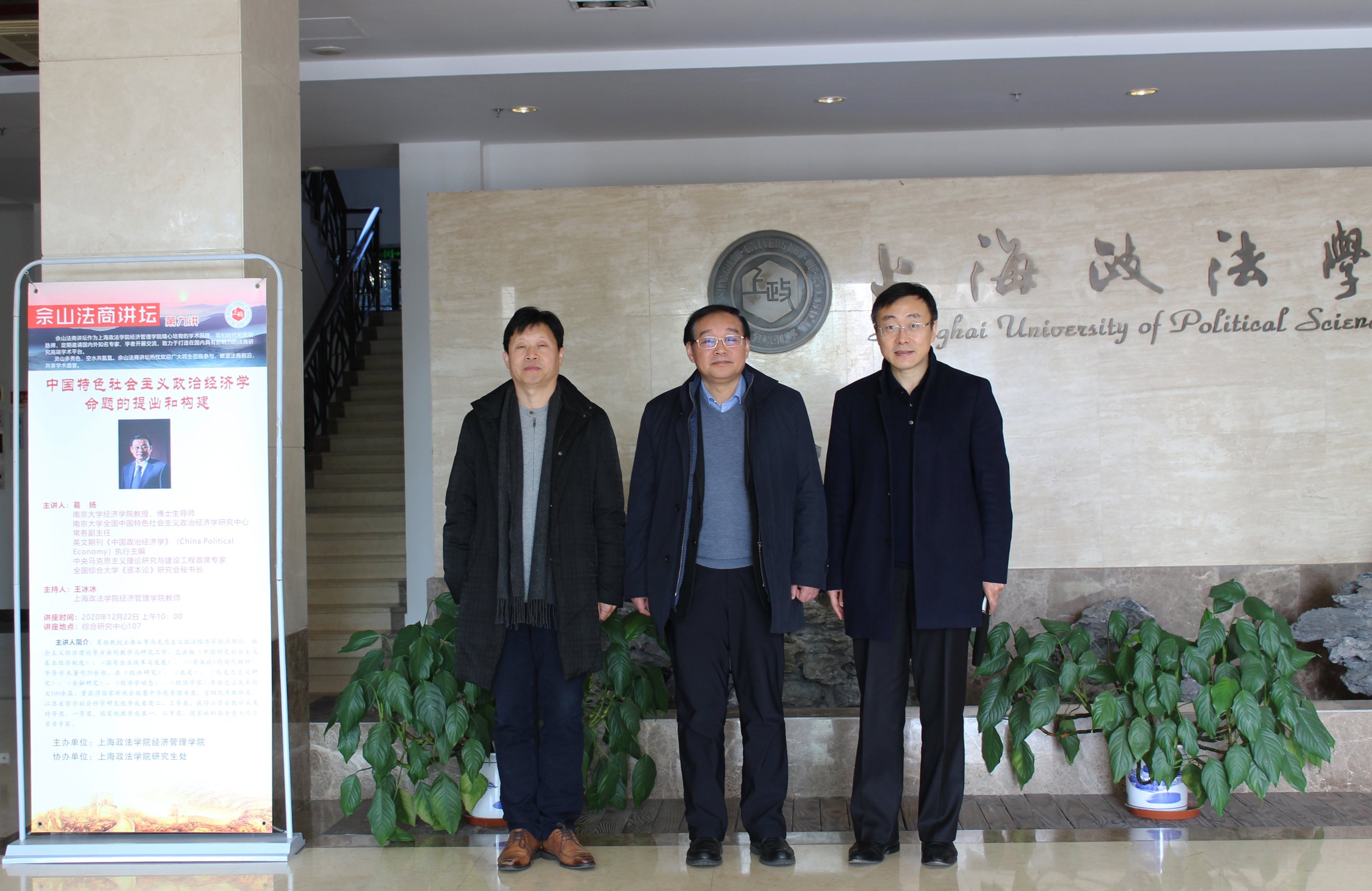 12月22日上午,佘山法商讲坛第九讲在综合研究中心通过线下线上相结合的方式举行。南京大学全国中国特色社会主义政治经济学研究中心常务副主任、英文期刊《中国政治经济学》(China Political Economy)执行主编、中央马克思主义理论研究与建设工程首席专家、全国综合大学《资本论》研究会秘书长,南京大学经济学院教授、博士生导师葛扬教授应邀来我校,为师生作题为“中国特色社会主义政治经济学命题的提出和构建”精彩讲座。