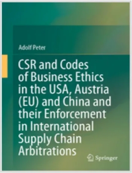 近期,我校国际法学院奥地利籍副教授阿道夫·彼得(Adolf Peter)新书《美国、奥地利(欧盟)和中国企业的社会责任和商业道德准则及其在国际供应链仲裁中的运用》(CSR and Codes of Business Ethics in the USA, Austria (EU) and China and their Enforcement in International Supply Chain Arbitrations)在国际著名出版社施普林格(Springer)正式出版。施普林格(Springer)出版社是享誉全球的德国第三大出版社。阿道夫·彼得副教授是格拉茨大学法学和哲学博士,同时也是奥地利-中国“一带一路”委员会会长,拥有奥地利、新加坡两地律师执业资格,同时也是奥地利某律师事务所的项目负责人,具有丰富的国际仲裁实务经验。