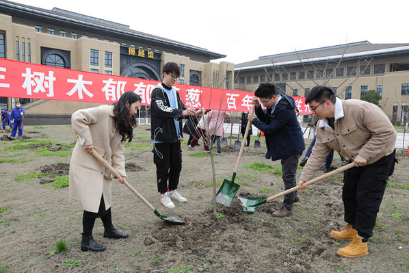植树活动一开始,校领导就带领师生扛起铁锹,走向植树地点,和大家一起挥锹铲土、扶苗培土、围堰浇水,忙碌了起来。校领导一边劳动,一边同身边的师生交流加强生态保护、坚持绿色发展的看法,叮嘱大家养成爱护自然、保护环境的意识,用自己的双手把校园建设得更加美丽。