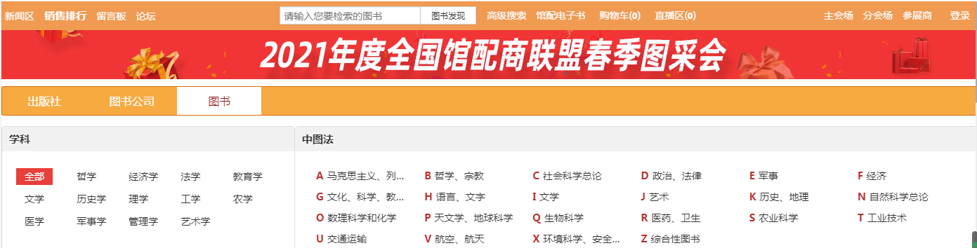 2.2 图书分会场:根据图书的中图法分类及学科分类展示各类图书,直接点击分类即可进入选书界面