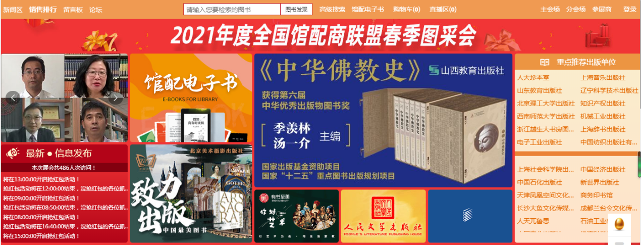 3.论坛:2021全国馆配商联盟春季线上图采会期间平台以录播方式播出以《图书馆智能化建设的发展趋势》、《哥伦布克——基于图书的知识发现》、《优化出版品种结构对图书市场的影响》为主题的三场论坛。
