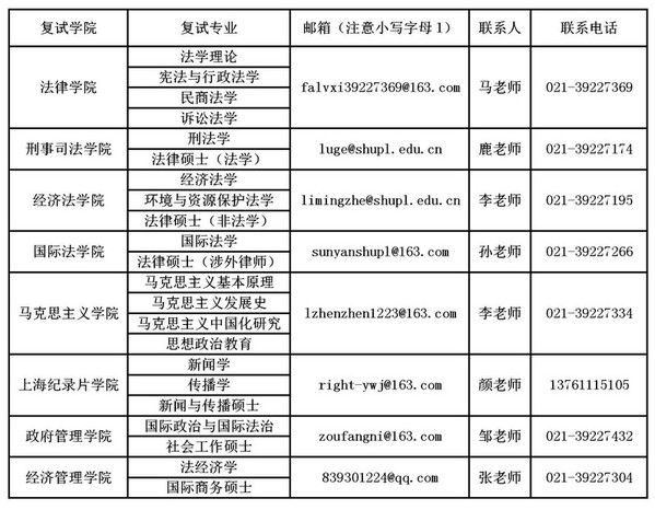 请考生按以上要求及时准确将有关材料发送到下列邮箱,邮件名与附件名相同,即法律硕士(法学/非法学/涉外律师)+姓名;学院+专业+姓名。