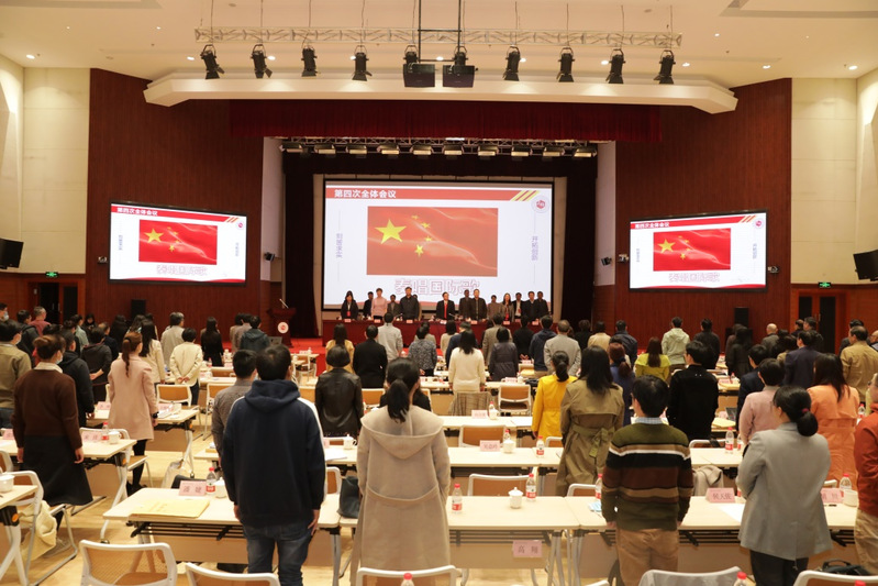 闭幕环节,全体起立,奏唱《国际歌》,365英国上市公司第四届教职工代表大会暨工会会员代表大会第一次会议圆满落幕。