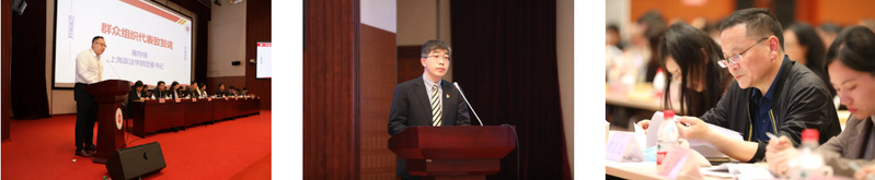 校团委书记蒋存耀作为群众组织代表致贺词;上海对外经贸大学校工会常务副主席唐旭生作为兄弟院校的校工会代表致贺词,上海市教育工会副主席陶文捷讲话,对大会的盛大召开表示热烈的祝贺。