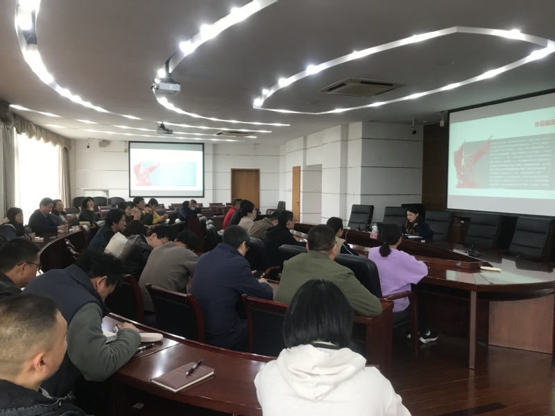 4月7日下午,机关“党史周周讲” 第五讲在求实楼513会议室举办。计财处许多以“长征与遵义会议”为主题讲授党课,机关40余名党员到场聆听。