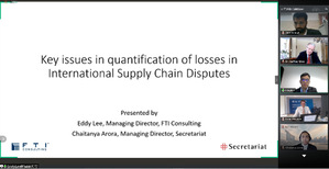 Germany Trade and Invest公司(上海)主任Robert Herzner分析了Covid-19是如何影响各个行业,以及这些公司如何应对或重新定位自己,以应对运输中断。新加坡FTI Consulting公司的管理主任Eddy Lee和新加坡Damages and Valuation Expert公司的管理主任Chaitanya Arora共同就在量化国际供应链纠纷中产生的损失时可能出现的关键问题,以及如何解决这些问题作出了分析并与组内专家进行了讨论。Wöss & Partners(墨西哥)律所的合伙人律师Herfried Wöss与各位专家一起讨论了汽车行业的供应链与仲裁。