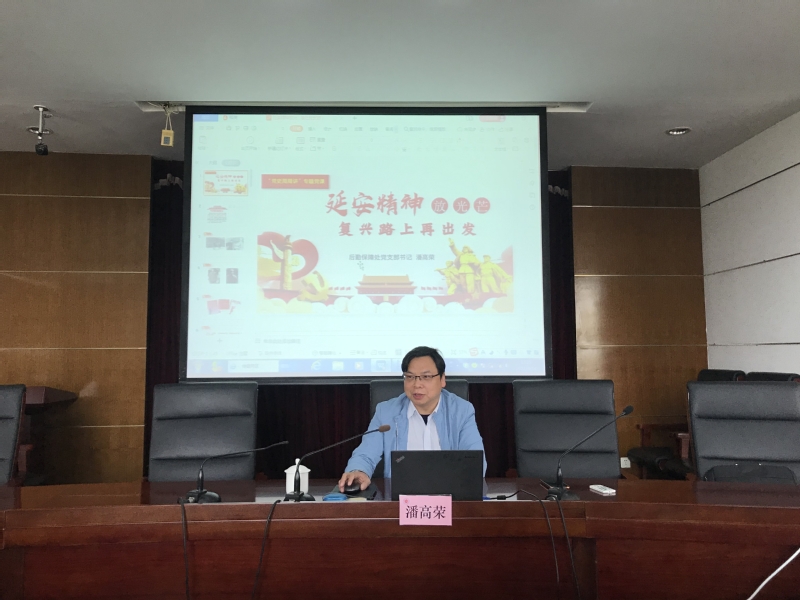 4月14日下午,机关“党史周周讲”第六讲在求实楼513会议室举办。后勤保障处副处长潘高荣以“延安精神放光芒,复兴路上再出发”为主题讲授党课,机关30余名党员到场聆听。