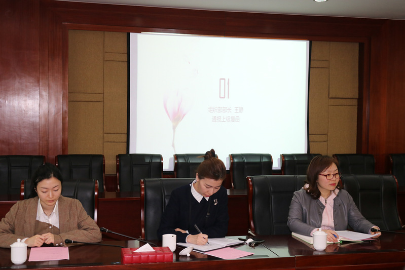 组织部副部长张东霞首先通报上级复函,同意我校根据上海市妇联“提高级妇女之家”机构设置要求和市教育工会《关于加强和改进机关和事业单位妇女组织建设的指导意见(试行)》沪妇〔2019〕44 号文的要求,成立妇女工作委员会。