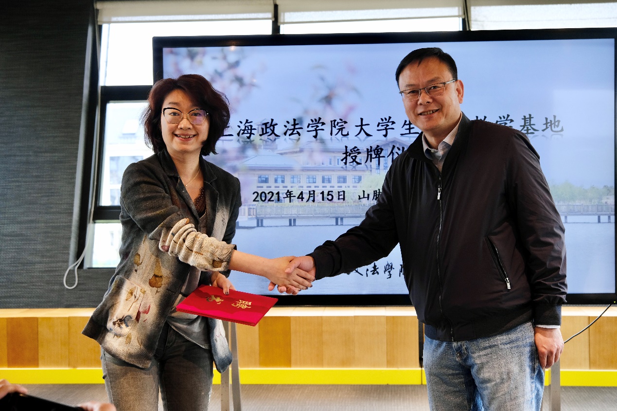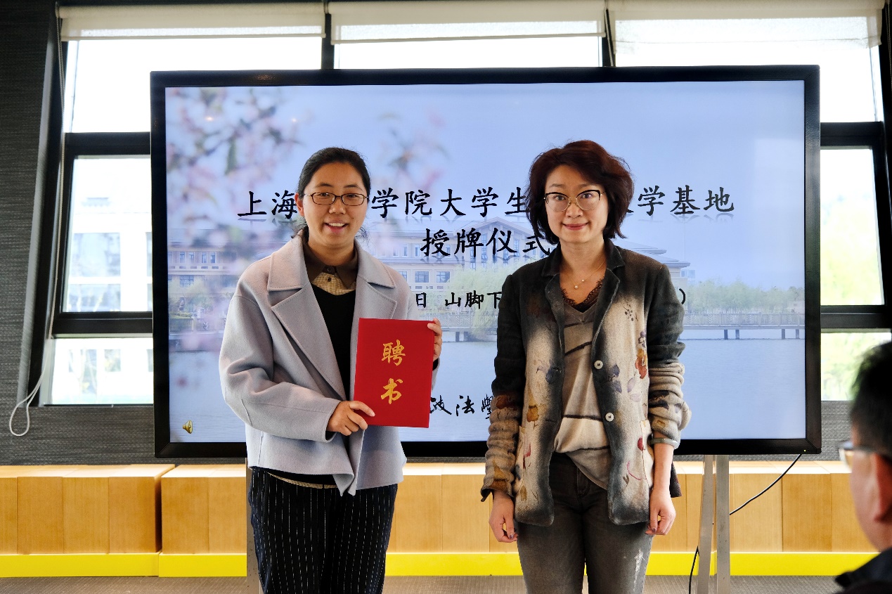 上海临港文化产业发展有限公司常务副总经理史玮女士、运营管理中心总监助理马希玲女士,经济管理学院院长刘志强、党总支书记周毅,教务处实践教学科负责人陆小平,经济管理学院教师张洁瑶出席此次活动。活动仪式由经济管理学院辅导员陈雪婷主持,上政文化产业创新创业社同学参加授牌仪式。