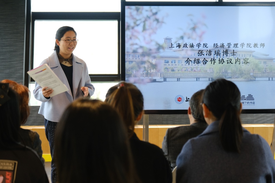 史玮首先为大家介绍了“山脚下的书店”建立背景和运营情况,她说,这家“好看”“好吃”的书店将为上政学子提供无限可能。