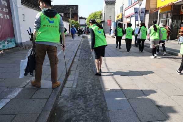 报告结束后,刑事司法学院一行身着志愿者服,来到朱家角景区,沿景区道路开展“随手捡”志愿服务,拾捡废纸、食品袋、塑料袋、烟头等垃圾。志愿者用自己的实际行动,感染和引导身边的人,深入践行生态文明理念,携手参与环境保护,以实际行动向游客倡导文明旅游的理念。(崔晨曦 撰稿)