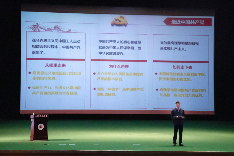 今日讲授的是专题党课第一部分“走近中国共产党”。“思想入党的起点,并不在写下入党申请书的那一刻,而是从你用心了解她开始”。在三个小时的时间里,刘刚以严谨的逻辑框架、翔实的事例数据、风趣的语言风格和多媒体表现形式,深刻阐释了中国共产党从哪里来、为何而来、向哪里去,使党史更加鲜活、理论更加生动。刘刚表示,面向未来,最终要靠青年一代。随着越来越多的优秀大学生向往党、加入党、追随党,党的活力定会源源不断,党的事业必将生生不息。现场气氛活跃、互动踊跃,多次响起热烈的掌声。
