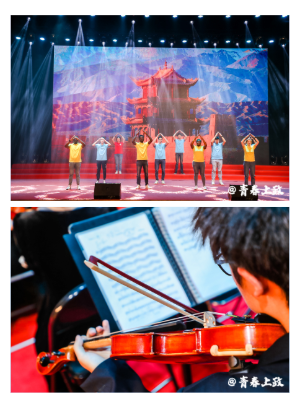 本次诗会共分为三个篇章,“勇敢的青年”“奋斗的中国”“闪耀的党章”,穿插了情景剧、器乐、舞蹈、诗歌朗诵等表演。我校青年教师代表、松江区老兵宣讲团代表、中外学生代表、大学生艺术团等参加了本次演出。