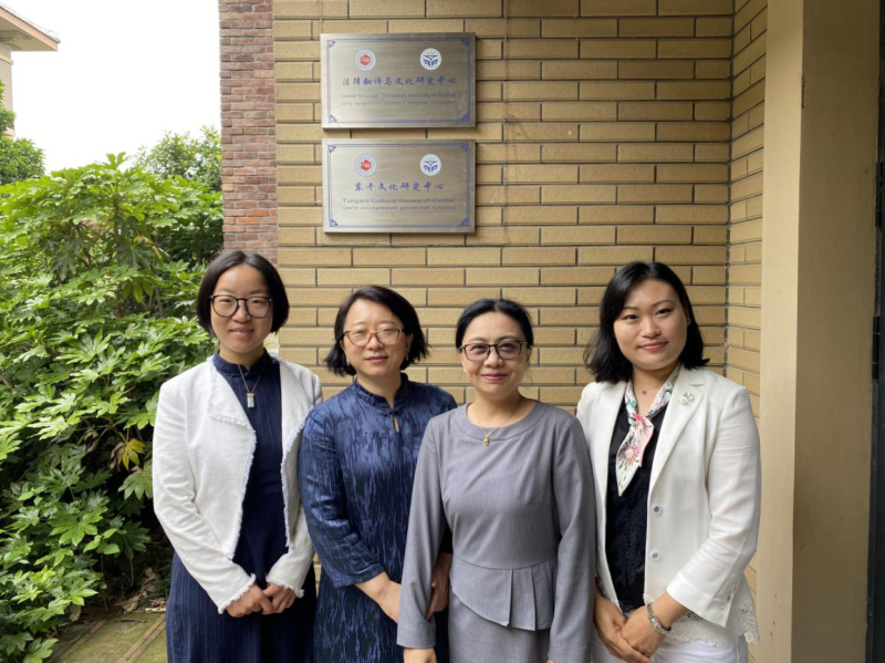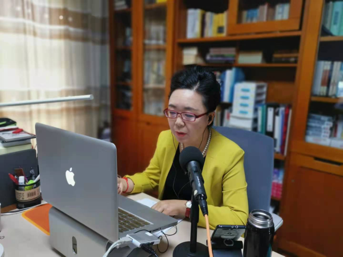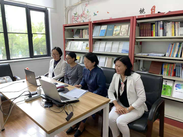 杨军红副教授、赵凤彩副教授、岳强博士、张晓玲博士在语言文化学院东干文化研究中心参加线上会议