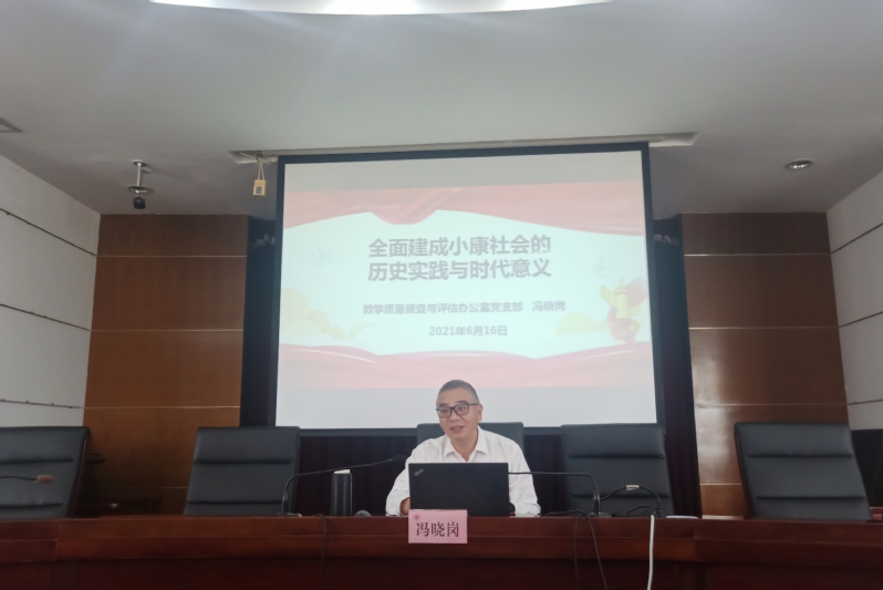 6月16日下午,机关“党史周周讲”第十四讲在求实楼513会议室举办。教学质量督查与评估办公室冯晓岗以“全面小康:党史的新篇章”为主题讲授党课,机关近30名党员到场聆听。
