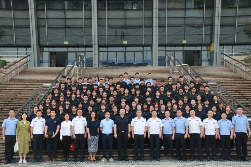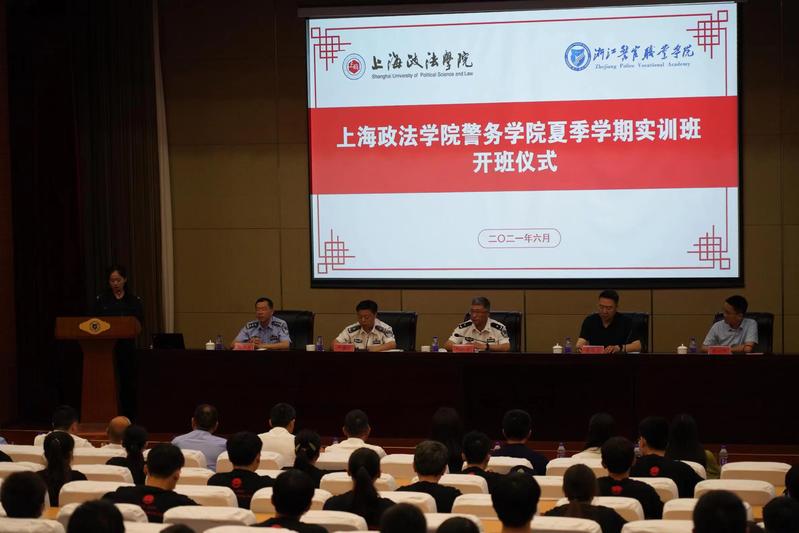 6月26日上午,我校警务学院学生夏季学期实训班开班仪式在浙江警官职业学院举行。浙江警官职业学院(以下简称“浙警院”)党委副书记、院长周敏华,党委委员、副院长严浩仁,我校党委副书记、纪委书记、监察专员潘牧天,警务学院院长蔡一军、副院长杜雪晶出席开班仪式。浙警院教务处、学生处负责人,刑事司法系主任、副主任,以及我校警务学院一百多名师生参加开班仪式。严浩仁主持开班仪式。