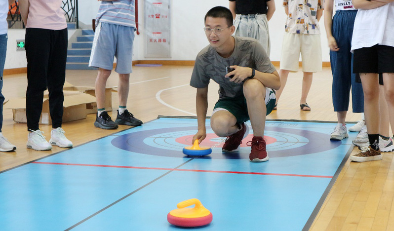 本次素拓包括“一鼓作气”“陆地冰壶”“环环相扣”三个项目。同学们在志愿者的讲解下,依次熟悉了三个项目,尝试学习各项目的规则和技巧。活动期间,各班成员团结协作、相互鼓励,每个人都积极地参加到了活动中来,充分体现了研究生青春风采和蓬勃朝气。三个班级派出代表队进行各项活动的友谊赛,欢声笑语、加油呐喊声不绝于耳,将现场气氛推向高潮。