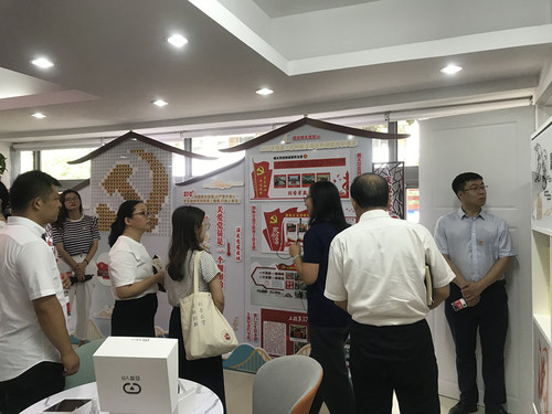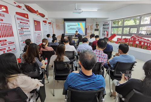 随后,全体人员来到参观的第二站——学校党建服务中心,党委常委、组织部统战部部长王静向与会人员简要介绍了学校党建服务中心建设背景。她指出,学校党建服务中心获得了市教卫工作党委系统第二批示范性“党建服务中心”项目立项,经过半年筹备已顺利竣工。接下来,党建服务中心将成为加强基层党建、发挥组织引领的重要载体,健全基层党组织各项制度,提升党员教育管理质量,推动基层党建工作高质量创新发展。