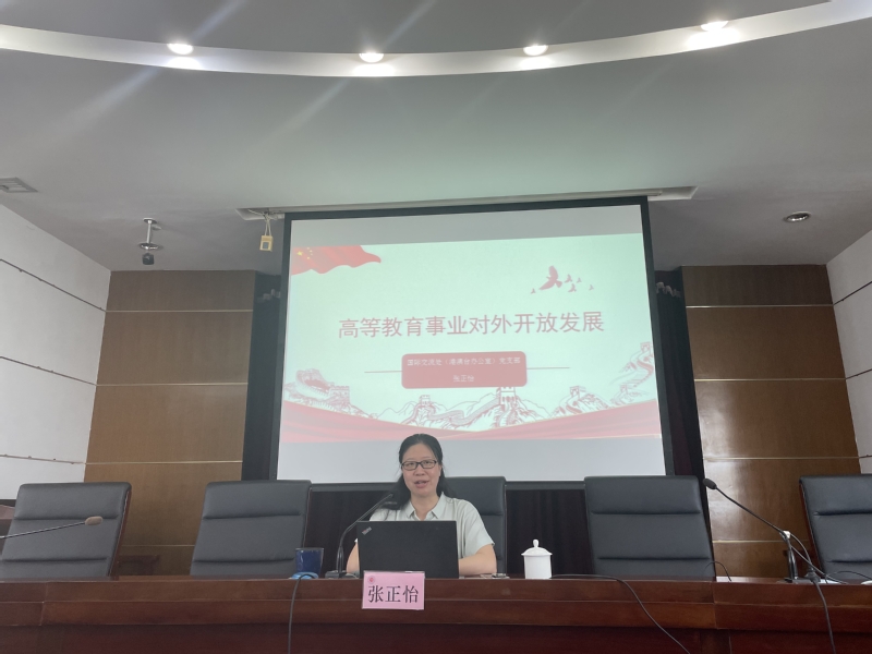 张正怡围绕我国高等教育事业对外开放发展阶段、高等教育事业对外发展双向流动、疫情背景下高等教育交流合作等方面,带领党员同志回顾了自十一届三中全会以来,党引领高等教育对外开放走过四十余年辉煌历程。高等教育对外开放从现实需要走向有序规划,从初步尝试走向成熟发展,从接轨跟进走向创新开拓,教育对外开放实现了制度规范化、执行精细化、发展阶段化、影响国际化。