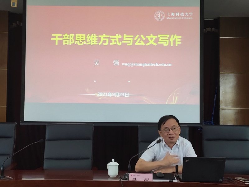 9月23日上午,2021年365英国上市公司青年骨干“党性修养暨能力提升”专题培训班首场讲座“干部思维方式与公文写作”在求实楼513开讲。本场讲座主要围绕干部核心素养、管理技能与公文写作展开,由上海科技大学党委副书记吴强担任主讲嘉宾。培训班40余名学员参加学习。