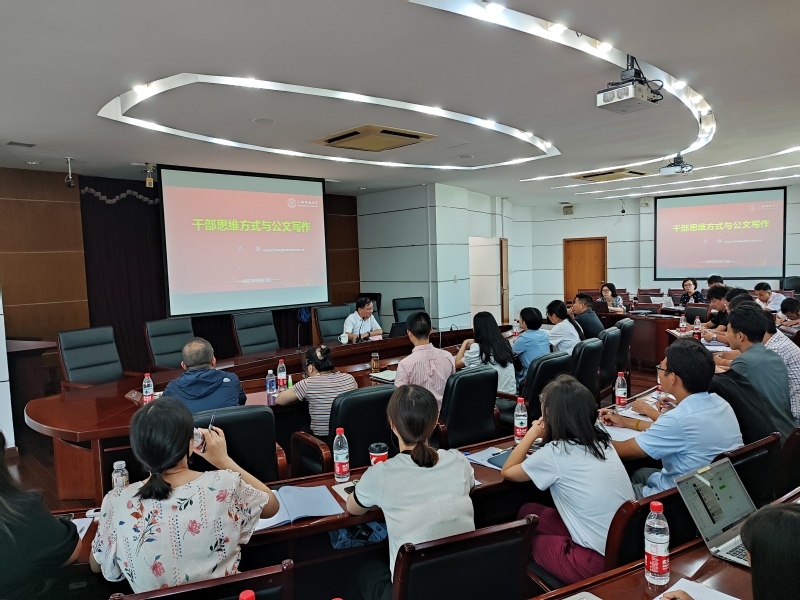吴强结合自己多年来从事文字工作的经历,从公文写作的规范要求、公文写作的语境分析、公文提纲的设计搭建、公文语言的逻辑章法等方面分享了自己的体会。他指出,公文撰写的关键是科学系统的思维方式与广阔创新的视野,要有“身在兵位,胸为帅谋”的站位高度。吴强通过几则典型文案的剖析,为大家辨析出容易混淆的公文文种与用语,强调公文写作要有政治思维、系统思维、战略思维、创新思维和底线思维,要条理清晰、重点突出、紧贴实际,为大家提供了鲜活的经验和启示。