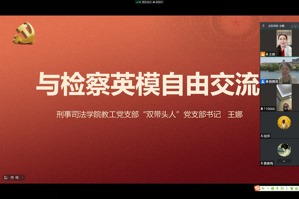 刑事司法学院党总支书记姚善英感谢章春燕的精彩分享,表示将继续支持 “双带头人”支部书记工作室搭建交流平台,充分发挥工作室在支部建设方面“头雁”效应,号召与会者学习检察英模精神,坚守人民立场,常怀干事创新精神;努力学习和弘扬伟大建党精神;勉励法学学生德法兼修,勇于担当法治使命,做有责任担当意识的法律人。