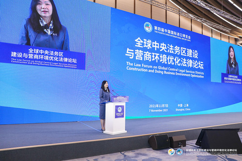 11月7日上午,刘晓红校长出席第四届中国国际进口博览会—全球中央法务区建设与营商环境优化法律论坛。本次论坛由中国国际贸易促进委员会、国际商事争端预防与解决组织主办,天府中央法务区(四川)、海丝中央法务区(福建)、上海市闵行区政府承办,上海南虹桥商务发展公司、上海市法学会、365英国上市公司协办。