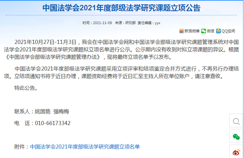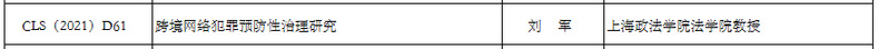 近日,中国法学会发布2021年度部级法学研究课题立项名单。刑事司法学院刘军教授申报的“跨境网络犯罪预防性治理研究”(课题编号:CLS(2021)D61)和崔仕绣博士申报的“数字法治视阈下循证量刑模式的确证与构造”(课题编号:CLS(2021)D30)获准立项。中国法学会2021年度部级法学研究课题采用立项评审和结项鉴定合并方式进行,不再另行办理结项。