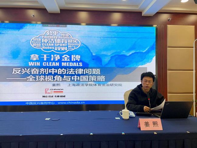开班仪式后,姜熙为培训班讲师作了“反兴奋剂中的法律问题——全球视角与中国策略”的主题讲座,对全球反兴奋剂的基本情况、最新进展,以及我国反兴奋剂法律法规体系,包括刑法修正案十一中的妨害兴奋剂管理罪、《体育法》最新修改草案中的反兴奋剂章节等进行了系统的讲授。