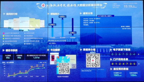 图书馆大数据综合展示系统作为智慧图书馆二期项目,是智慧图书馆建设的重要组成部分。该项目也是今年图书馆“我为群众办实事”实践项目工作之一,得到学校领导及相关部门的大力支持。该系统集成了图书馆现有数据资源及读者服务的功能,于11月29日投入使用。