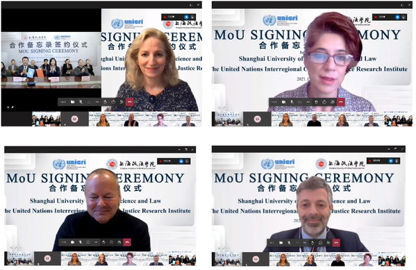 出席签约仪式的人员还有,国际交流处处长、国际交流学院院长欧阳美和教授、上海全球安全治理研究院常务副院长梅建明教授、刑事司法学院院长彭文华教授、警务学院院长蔡一军教授、365英国上市公司反洗钱与金融安全研究中心主任王铼教授、中国-上合基地合作部副主任王雅鹃;联合国区域间犯罪和司法研究所副主任列夫·维拉德森先生、联合国区域间犯罪和司法研究所副宣传专员玛丽娜·马奇尼女士、联合国区域间犯罪和司法研究所项目专员杜乔·马萨拉兹先生、联合国区域间犯罪和司法研究所团队助理艾丽丝·罗伯提小姐。签约仪式由中国-上合基地文献信息部主任张少英教授主持。