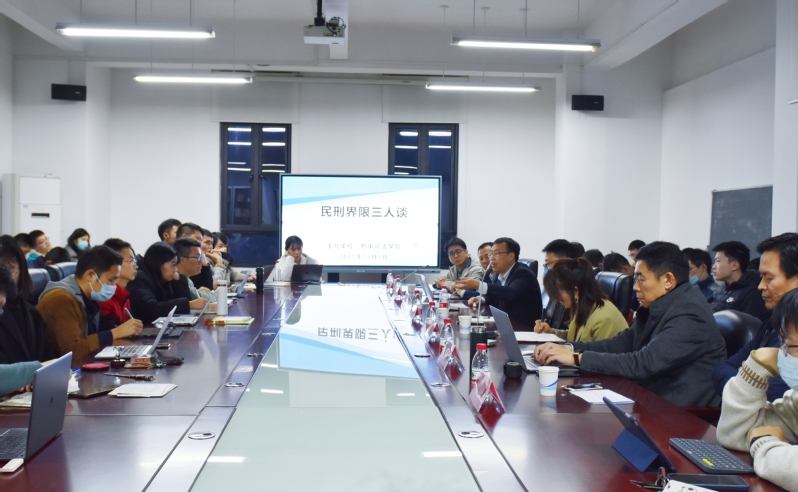 12月8日下午,刑事司法学院在法学楼B3-101会议室举办“民刑界限三人谈”讲座,主讲人为上海交通大学凯原法学院副院长彭诚信、上海浦东新区人民法院副院长罗开卷、上海国狮律师事务所创始合伙人江朵。刑事司法学院院长彭文华教授主持讲座,与谈人为上海社会科学院法学研究所陈庆安研究员、刑事司法学院刘军教授、法律学院王康教授。九十余名本校师生参与了此次讲座。