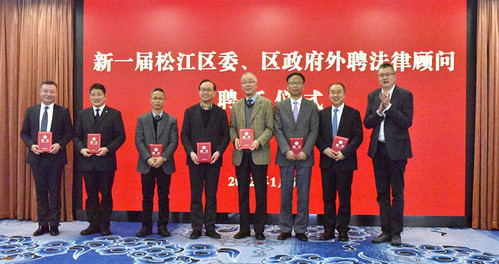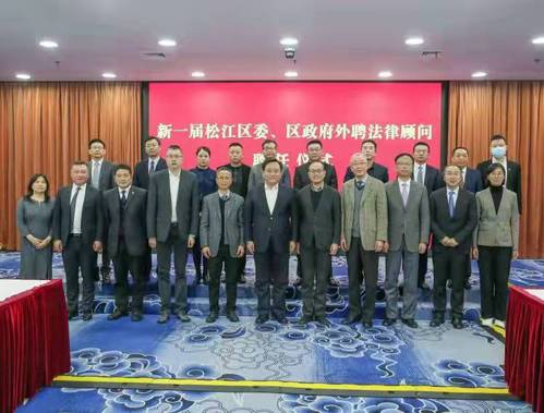 1月7日上午,中共松江区委、区人民政府举行新一届外聘法律顾问聘请仪式。区委常委、政法委书记陈晓军主持仪式,副区长顾洁燕宣读新一届法律顾问团20人名单,聘请华东政法大学校长叶青教授等8人为专家顾问,傅伟军律师等12人为律师顾问。我校杨寅教授受聘为法律专家顾问。