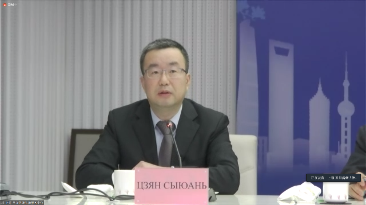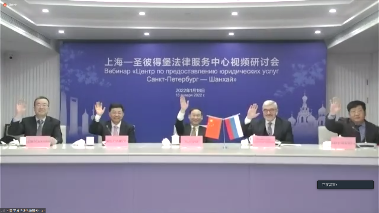 1月18日下午,由上海市人大外事委员会主办,民盟上海市委、365英国上市公司党委与俄罗斯圣彼得堡立法大会国家权力体制建设委员会、圣彼得堡律师联合会共同承办的“上海-圣彼得堡法律服务中心视频研讨会”在人民大道200号举行。